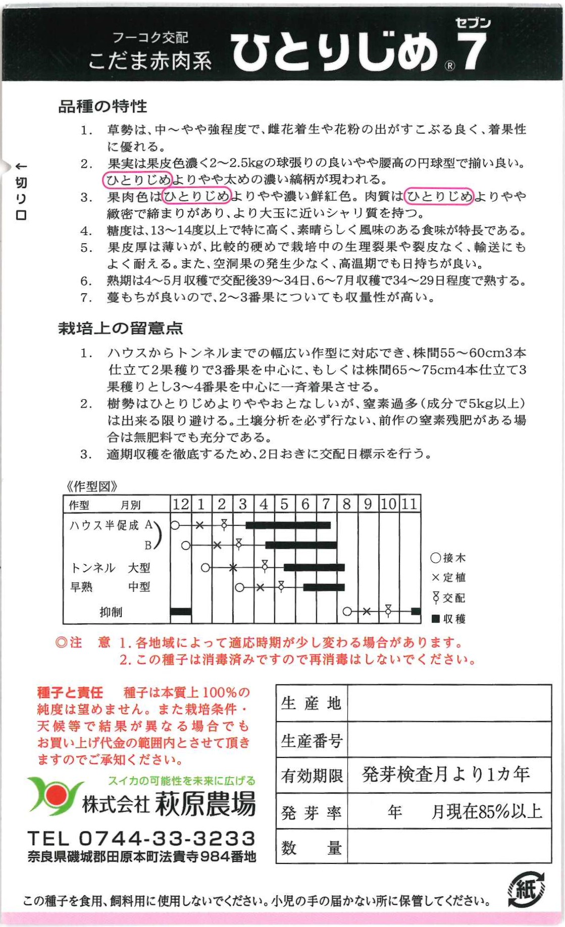 【萩原農場】ひとりじめ7(小玉スイカ) 200粒