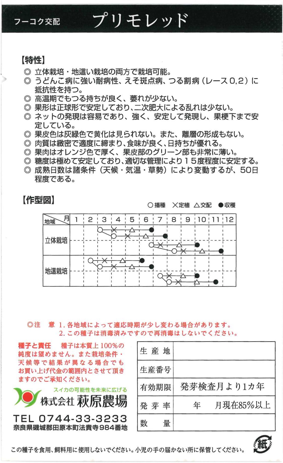 【萩原農場】プリモレッド(メロン)100粒