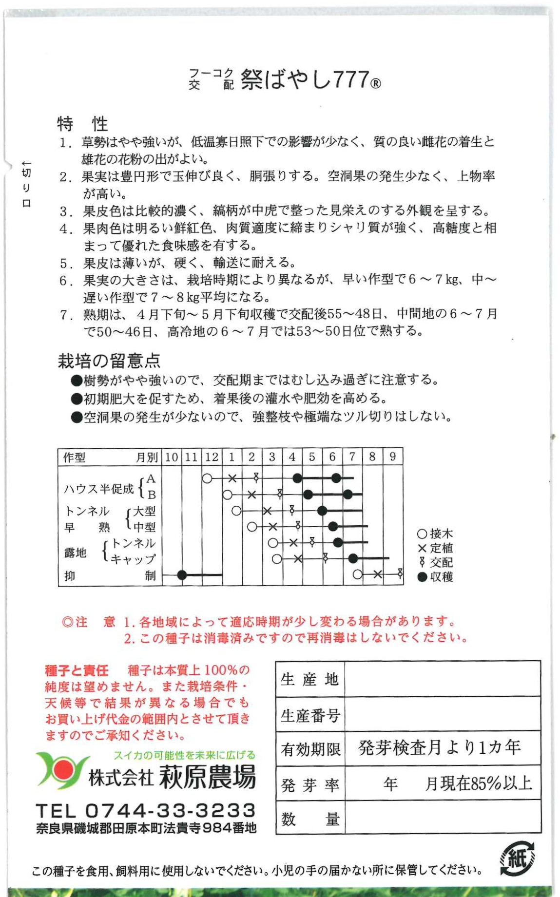【萩原農場】祭ばやし777(大玉スイカ) 200粒